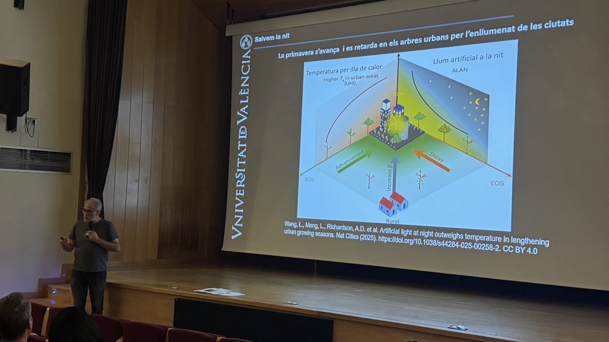 Després de parlar de les propietats de la contaminació lumínica i del paper fonamental de l’atmosfera en la seua propagació, hem repassat els efectes sobre el canvi climàtic, l’astronomia i la seguretat vial i personal d’una manera breu. Ens hem allargat més en parlar de l’efecte de la llum artificial nocturna sobre la salut humana i sobre el medi ambient.